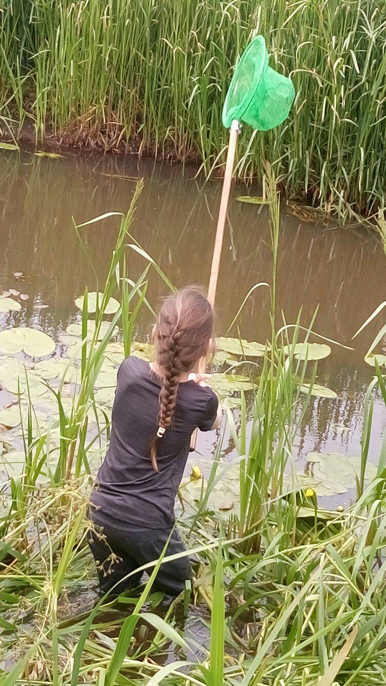 Vereniging Natuur en Milieu Hilvarenbeek had vrijwilligers geregeld die klaar stonden met schepnetjes, loepjes, onderzoekbakken en zoekkaarten. Er werd fanatiek geschept door de sloot om te bekijken wat er allemaal leeft in het water. Dankzij het heerlijke weer konden de kinderen ook zelf het water in om nog beter te kunnen scheppen.
